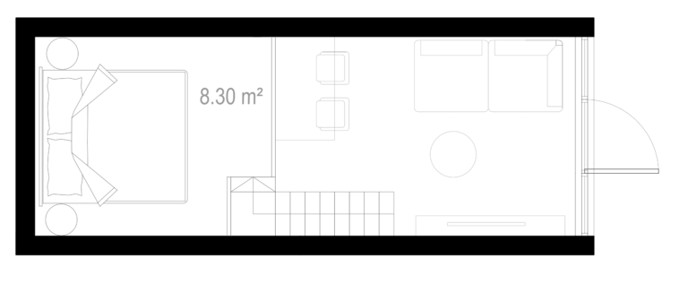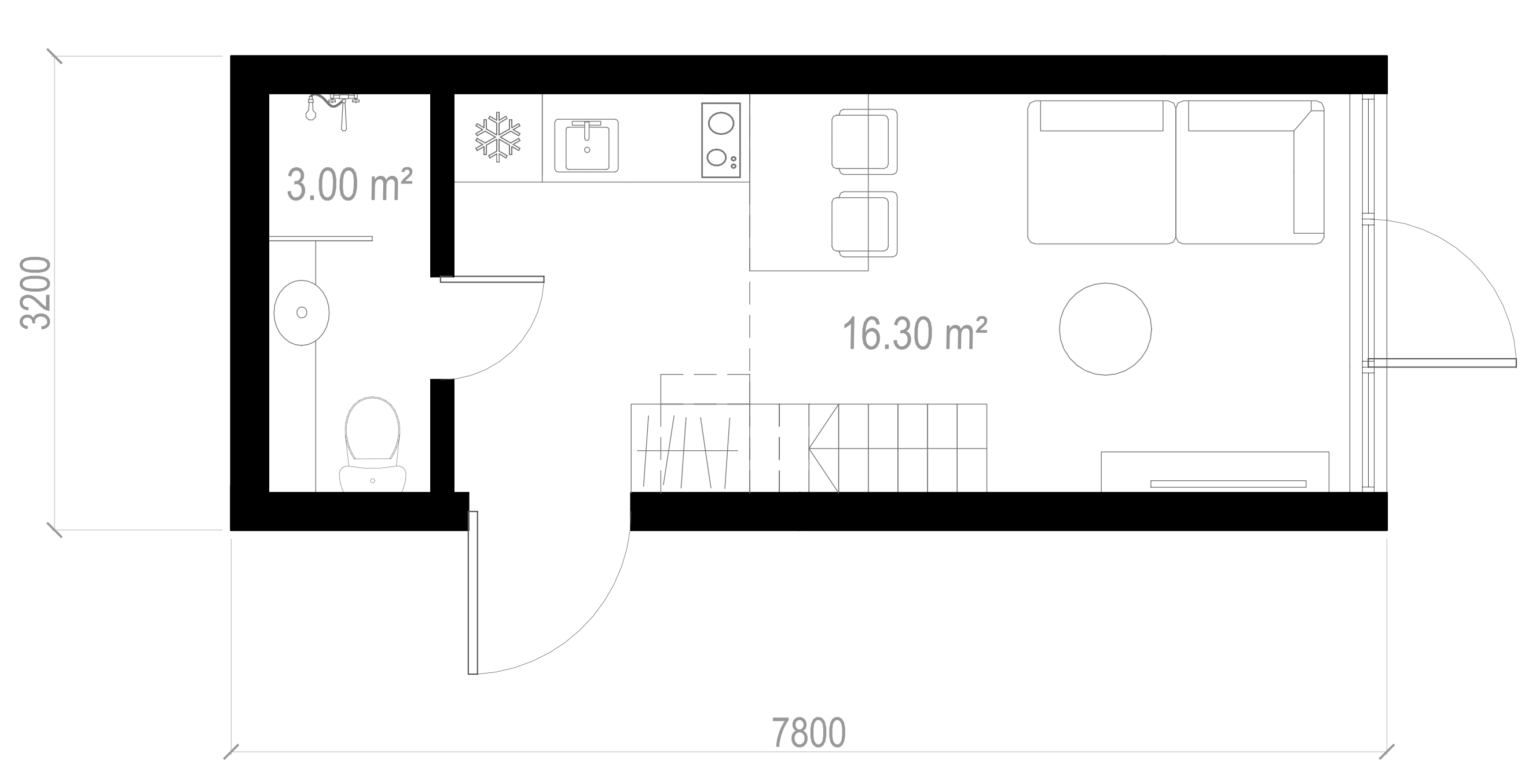 Šī kompaktā divlīmeņu māja ar kopējo platību 25m² ir ideāli piemērota tiem, kas meklē modernu un ērtu dzīvesvietu nelielā platībā. Mājai ir rūpīgi izstrādāts plāns, kas nodrošina ērtu pārvietošanos starp telpām un maksimālu dzīvojamās platības izmantošanu. Pirmais stāvs piedāvā atvērtu dzīvojamo zonu ar virtuvi, kā arī vannas istabu. Antresola līmenī ir papildu dzīvojamā zona, kas piemērota guļamistabai vai darbistabai.